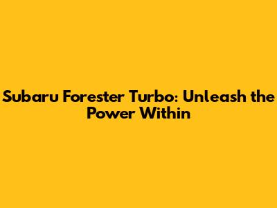 Subaru Forester Turbo: Performance, Specs, And More