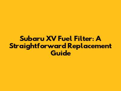 Subaru XV Fuel Filter: DIY Replacement Guide