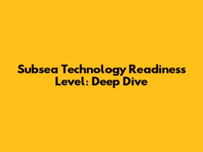 Subsea Technology Readiness Level: Deep Dive