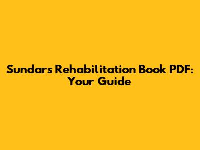 Sundar's Rehabilitation Book PDF: Your Guide