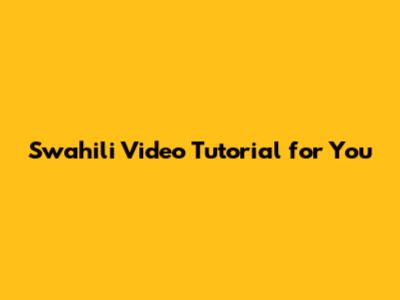 Swahili Video Tutorial For You