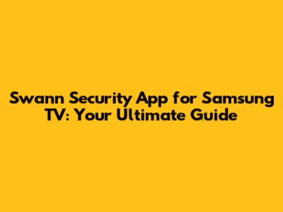 Swann Security App On Your Samsung TV: A Quick Guide
