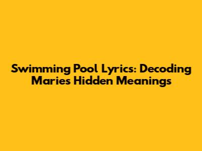 Swimming Pool Lyrics: Decoding Marie's Hidden Meanings