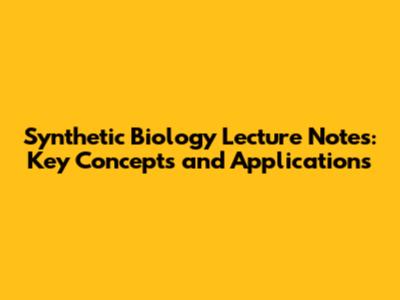Synthetic Biology: Lecture Notes & Key Concepts