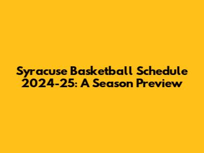 Syracuse Basketball Schedule 2024-25: What To Expect