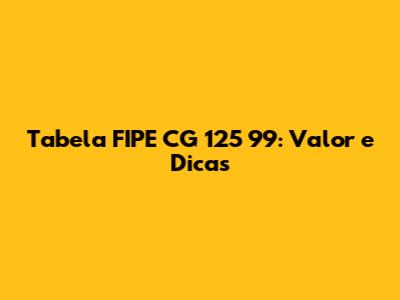 Tabela FIPE CG 125 99: Valor E Dicas