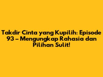 Episode 93 Takdir Cinta yang Kupilih merupakan episode yang sangat penting dan penuh kejutan. Berbagai rahasia mulai terungkap, pilihan-pilihan sulit harus diambil, dan konflik cinta semakin memanas. Penonton akan dibuat penasaran dengan kelanjutan cerita, dan ingin tahu bagaimana nasib para karakter selanjutnya. Kita berharap agar cerita ini terus menyajikan cerita yang menarik, dengan pengembangan karakter yang kuat, plot twist yang mengejutkan, dan sinematografi yang memukau. Semoga para karakter bisa menemukan kebahagiaan yang mereka cari, dan cinta sejati akan menjadi pemenang dalam kisah ini. Jangan lewatkan episode-episode selanjutnya, karena akan ada banyak kejutan menarik lainnya!