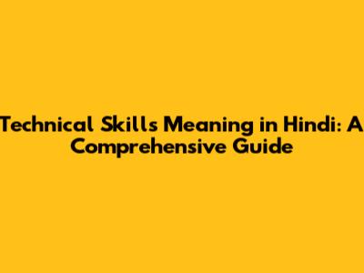 Technical Skills Meaning In Hindi: A Comprehensive Guide