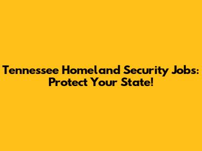 Tennessee Homeland Security Jobs: Protect Your State!