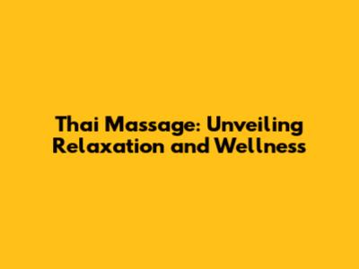 Thai Massage: Unveiling Relaxation And Wellness