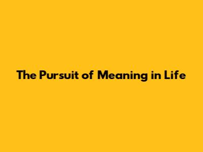 The Pursuit Of Meaning In Life