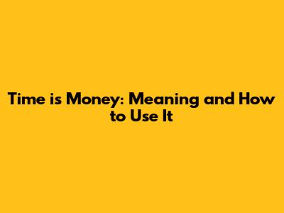 Time Is Money: Meaning And How To Use It