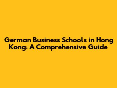 Top German Business Schools In Hong Kong: A Complete Guide