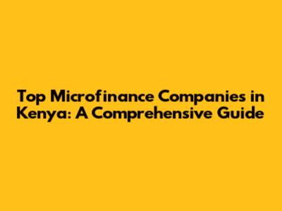 Top Microfinance Companies In Kenya: A Comprehensive Guide