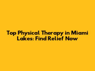 Top Physical Therapy In Miami Lakes: Find Relief Now