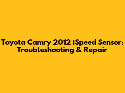Toyota Camry 2012 ISpeed Sensor: Troubleshooting & Repair