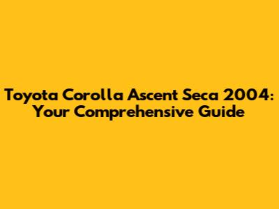 Toyota Corolla Ascent Seca 2004: Your Comprehensive Guide
