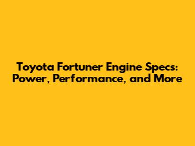 Toyota Fortuner Engine Specs: Power, Performance, And More