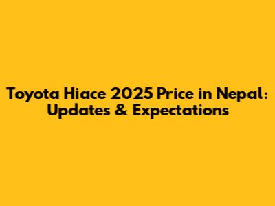 Toyota Hiace 2025 Price In Nepal: Updates & Expectations