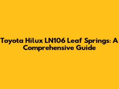 Toyota Hilux LN106 Leaf Springs: A Comprehensive Guide