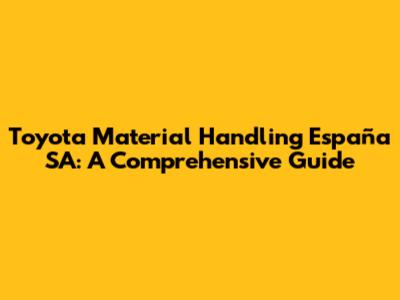 Hey there, fellow logistics enthusiasts! Today, we're diving deep into the world of Toyota Material Handling España SA – a name that probably rings a bell if you're involved in warehousing, distribution, or pretty much anything related to moving stuff around. This comprehensive guide aims to break down everything you need to know about Toyota Material Handling España SA, from its core operations and products to its impact on the Spanish market and beyond. So, buckle up, because we're about to embark on a journey through the ins and outs of this industry giant! We'll explore their offerings, their role in the supply chain, and what makes them tick. Whether you're a seasoned pro or just curious about the world of forklifts and material handling equipment, this article is for you. Let's get started!