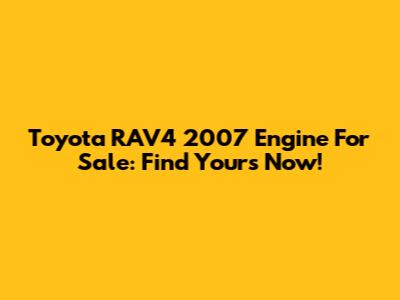 Toyota RAV4 2007 Engine: Find Yours Now!
