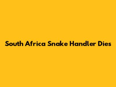 Tragedy In South Africa: Snake Handler Dies