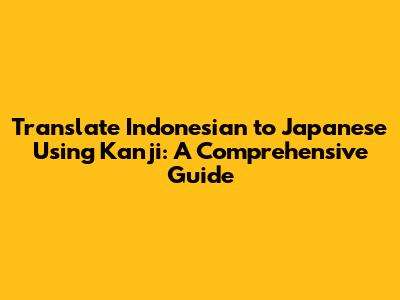 Translate Indonesian To Japanese Using Kanji: A Comprehensive Guide