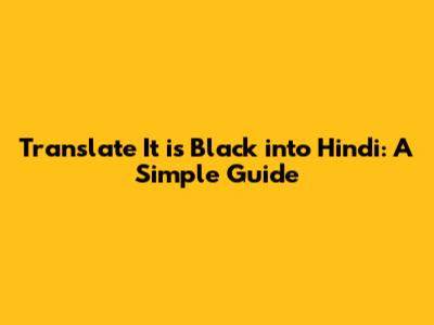 Translate It Is Black Into Hindi: A Simple Guide