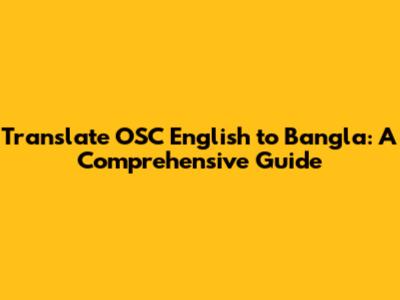 Translate OSC English To Bangla: A Comprehensive Guide