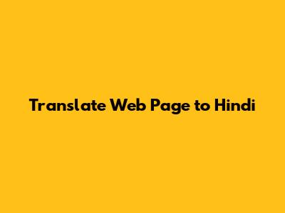 Translate Web Page To Hindi
