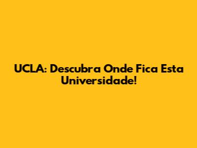 UCLA: Descubra Onde Fica Esta Universidade!