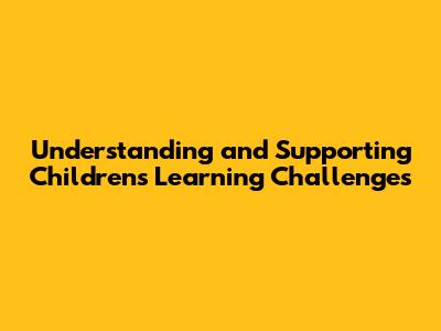 Understanding And Supporting Children's Learning Challenges