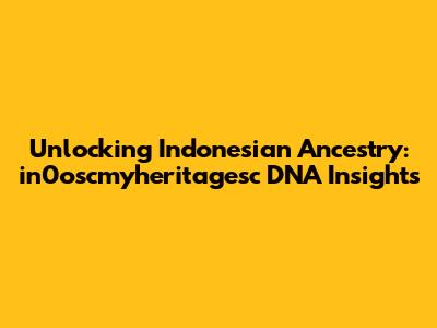 Unlocking Indonesian Ancestry: In0oscmyheritagesc DNA Insights