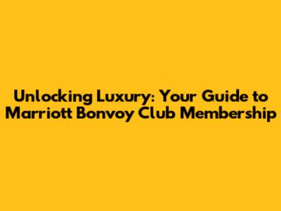 Unlocking Luxury: Your Guide To Marriott Bonvoy Club Membership