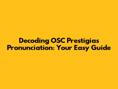 Unlocking OSC Prestigia's Pronunciation: A Simple Guide