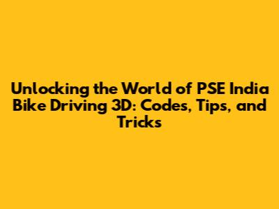 Unlocking PSE India Bike Driving 3D: Codes, Tips & Tricks