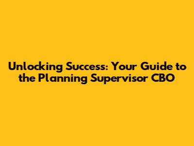 Unlocking Success: Your Guide To The Planning Supervisor CBO