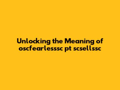 Unlocking The Meaning Of Oscfearlesssc Pt Scsellssc