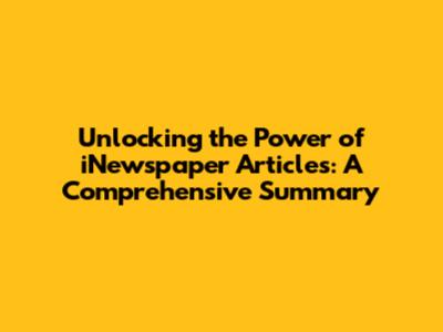 Unlocking The Power Of INewspaper Articles: A Comprehensive Summary