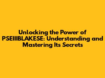 Unlocking The Power Of PSEIIIBLAKESE: Understanding And Mastering Its Secrets