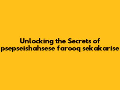 Unlocking The Secrets Of Psepseishahsese Farooq Sekakarise