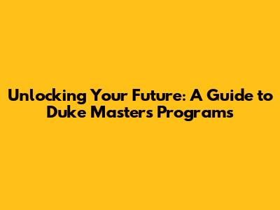 Unlocking Your Future: A Guide To Duke Master's Programs