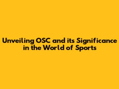 Unveiling OSC And Its Significance In The World Of Sports