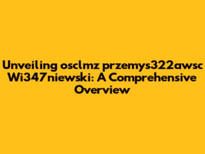 Unveiling Osclmz Przemys322awsc Wi347niewski: A Comprehensive Overview