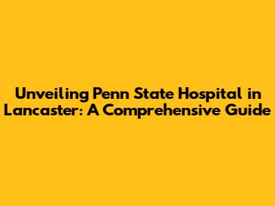 Unveiling Penn State Hospital In Lancaster: A Comprehensive Guide