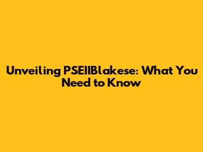Unveiling PSEIIBlakese: What You Need To Know