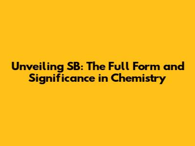 Unveiling SB: The Full Form And Significance In Chemistry