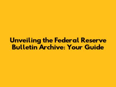 Unveiling The Federal Reserve Bulletin Archive: Your Guide