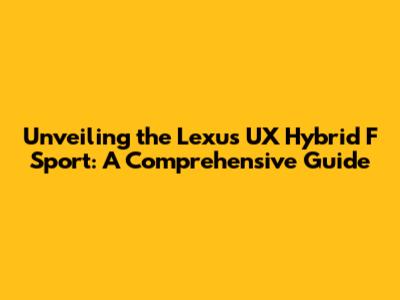 Unveiling The Lexus UX Hybrid F Sport: A Comprehensive Guide
